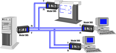 The Model 365 allows conversion between EIA-232 and either RS-422 or