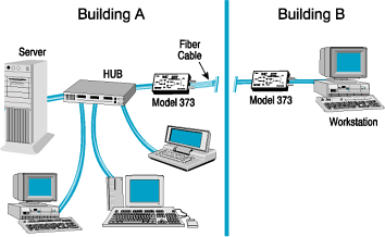 stations may be in a separate building from the Ethernet hub or they may