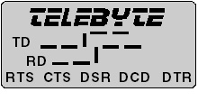 the device. The LCD display uses less than 1 milliwatt of power. The LCD display also shows the status of the following control signals: CTS, RTS, DSR, DCD, and DTR. These signals are displayed as mnemonic symbols, composed of three letters each, on the bottom line of the display. The presence of the three-letter mnemonic indicates that the respective control signal is high (positive). |