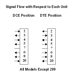 (e.g., 227MP2). Model 201/209/221: 0 to 19.2 kbps. Model 207/227: 0 to 115.2 kbps. 2.3 TransmissionAsynchronous full duplex over four wires (two twisted pairs). 2.4 SwitchesEach modem is equipped with a DTE/DCE switch to allow reversal of the TD and RD signals on the RS-232 interface. 2.5 IndicatorsThe Model 221/227 is equipped with an LCD display for data, five control signals and power. |