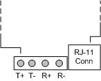 block marked R-, R+, T- and T+. The R+ and R- are the receiver input into the