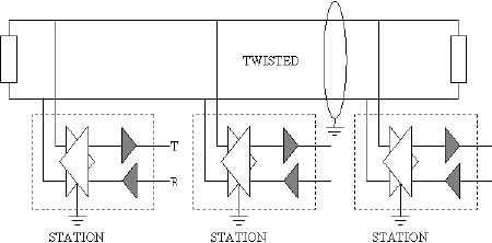 Note: The two-wire RS-485 link connecting the various equipment requires a cable with at least one twisted pair, nominal impedance of 120 W and general shielding. The use of a cable with different characteristics can lead to unreliable operation, especially in cases of high data rates and long distance.