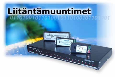 Telebyten tuotevalikoimassa on koko joukko erilaisia muuntimia, joiden avulla voi selviytyä ulos ei-yhteensopivien standardien viidakosta. Sähköisten muuntimien avulla RS232-laitteet voidaan liittää RS-422, RS-485, EIA-530, V.35, X.21 ja Mil Std 188 liitännöillä varustettuihin laitteisiin. Valokuitumuuntimet puolestaan sovittavat RS-232, RS-422, RS-485, E1/T1 ja ethernet-laitteet yksi –tai monimuotokuituun. Liitäntämuuntimet voivat saada sähkönsä liitetystä laitteesta ja niitä löytyy kehikkokiinnitteisinä ja optoerotettuina. |