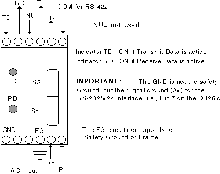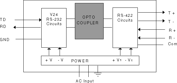 interface and the RS-422 line by the use of optical couplers. The transmit data