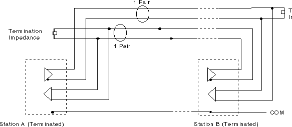 the RS-422 transmit pair. The RS-422 4-wire connection allows full-duplex