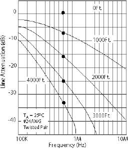 36 dB of gain may be applied. *For use with 100-Ohm #24 AWG twisted-pair wire. |